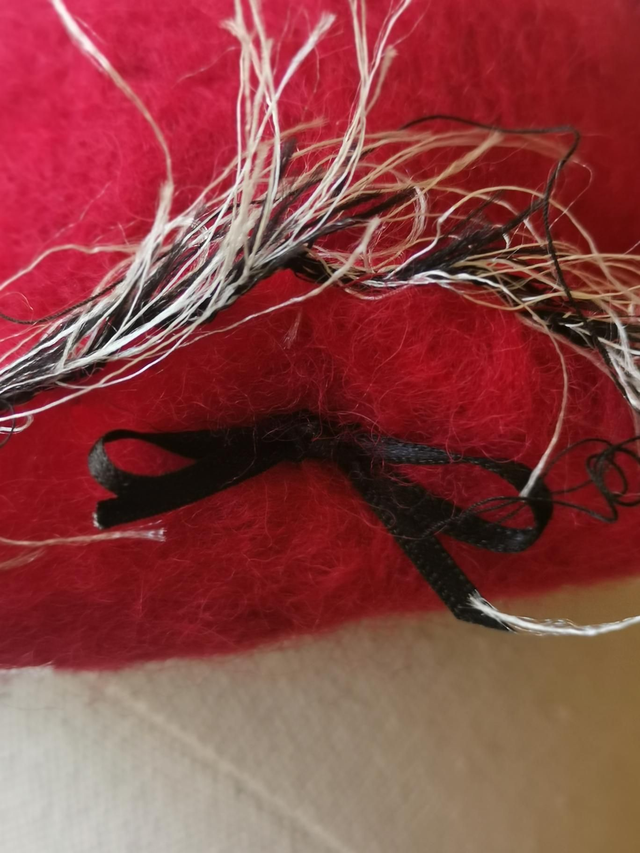 This cute little pirate's tricorn hat is made from Shetland fibre produced in the UK. I've added some black and white fluffy trim, leftover from another project, and a sweet black satin bow. It's attached to a brown hair band (this can be changed for a different colour, just message me) It's tied with a loose bow so that you can adjust the position to suit then I suggest you tie it with a knot to secure it.